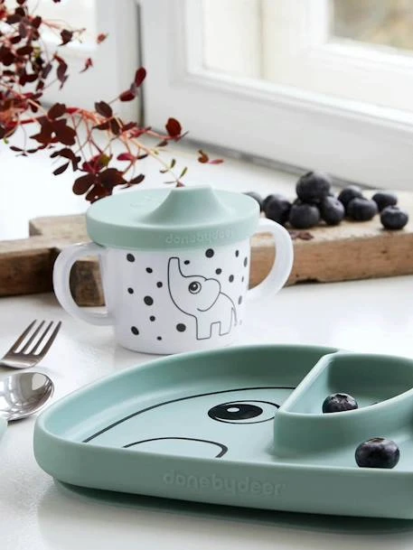 Antidérapante pour éviter qu’elle ne glisse et ne bascule (ou que bébé l’envoie voler !), l’assiette Stick&Stay Elphee de Done by Deer est dotée de 2 compartiments et de bords arrondis pour faciliter la prise des aliments.