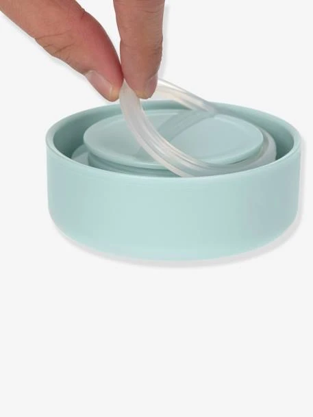 Avec le récipient isotherme double paroi en acier inoxydable, la bouillie ou le déjeuner des petits peut être servi tout de suite même en balade. Le récipient en acier inoxydable conserve les aliments au chaud ou au froid et le joint en silicone intégré dans le couvercle garantit l’étanchéité.