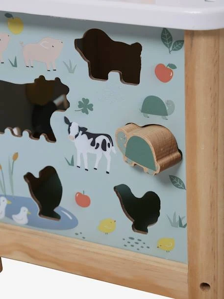 - Retrouvez à l’intérieur du cube les 5 petits animaux en bois à encastrer.