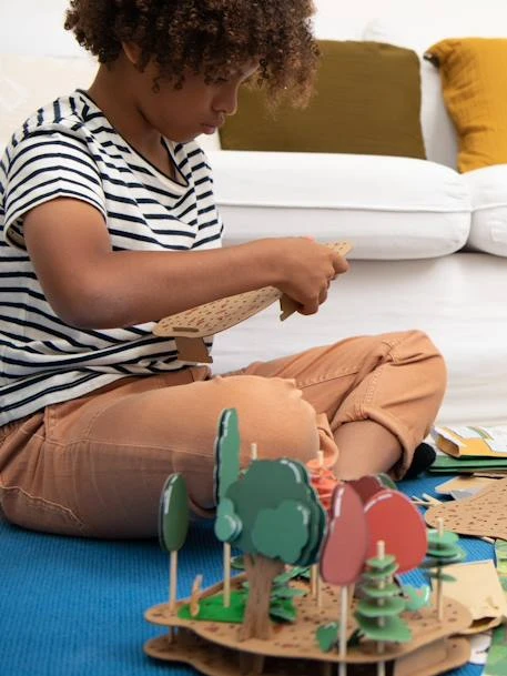 Découvre la forêt et son écosystème passionnant : comment les arbres, les plantes, les champignons et les animaux cohabitent et s’entraident, le rôle vital qu’ils jouent dans l’environnement, et même les différentes forêts qui existent à travers le monde et les arbres étonnants que l’on y croise ! Fabrique ta maquette de forêt en 3D et amuse-toi à inventer son histoire et sa légende. À travers ce kit, explorez la créativité et la curiosité de votre enfant ainsi que son autonomie à travers la réalisation de son activité !