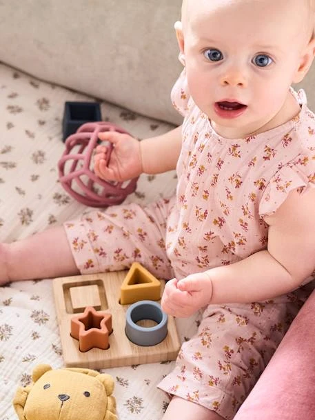 - Puzzle avec 4 formes en silicone à encastrer ( 1 carré, 1 triangle, 1 étoile, 1 cercle)