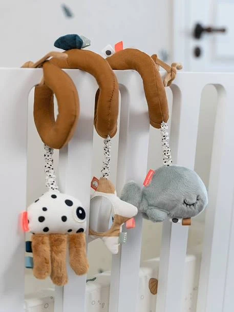 Avec la Spirale d’Activités Sea Friends les petites mains et les yeux des tout-petits pourront explorer différentes activités. Bébé va adorer la douceur de Wally et le doux son de sa clochette. L’étoile de mer suscitera la curiosité avec son miroir et le son du hochet va bien l’amuser ! La spirale d’activités flexible s’attache au berceau, au siège-auto, à la poussette et au parc de bébé. C’est le divertissement parfait pour le voyage !