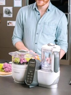 Rapide et efficace, ce stérilisateur utilise le procédé naturel à la vapeur avec simplement un peu d’eau et sans adjonction de produit chimique. Il permet d’éliminer de manière fiable les bactéries et de stériliser en même temps jusqu’à 4 biberons, ainsi que leurs tétines et les accessoires.